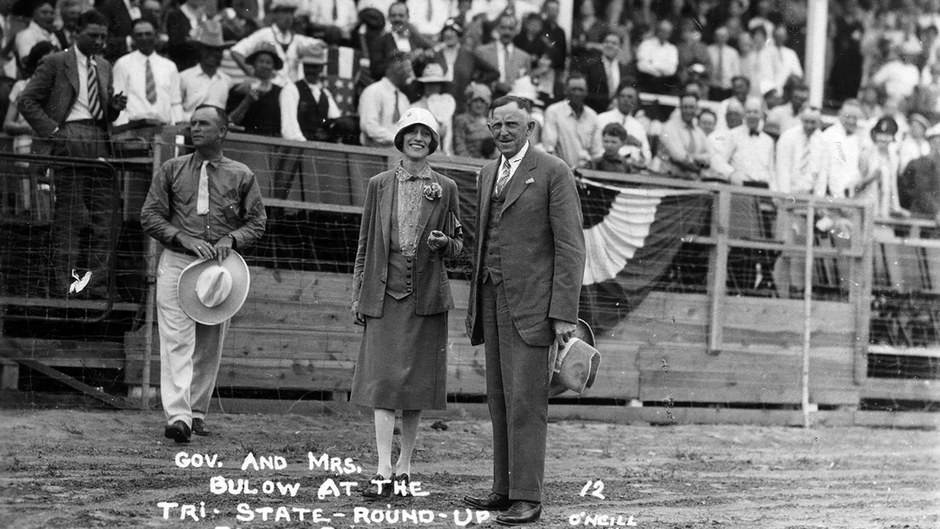 Caption: In the photograph above, Bulow and his wife, Sarah, attend the Black Hills Roundup in Belle Fourche while he served as governor.